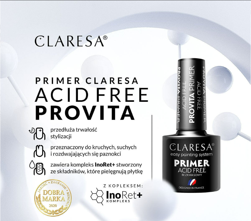 CLARESA Primer WITAMIN PROVITA 5g – Tırnak tasarımlarınız için maksimum yapışma.